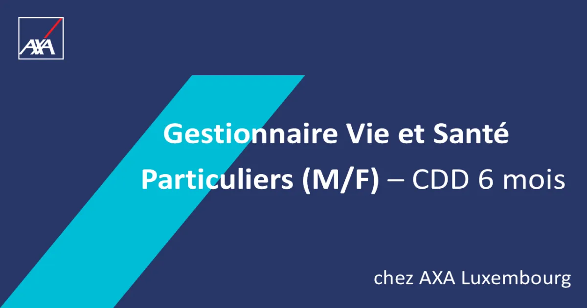 ApplyDevenez Gestionnaire Vie et Santé Particuliers (M/F) chez AXA Luxembourg, pour un contrat à durée déterminée de 6 mois